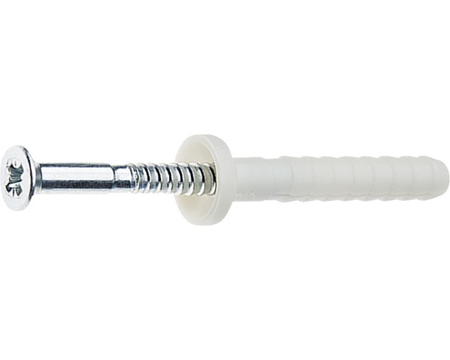 Diblu filetat de plastic cu șurub metalic, recomandat pentru fixarea profilelor UW și CW de pardoseală, perete și tavan.