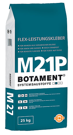 BOTAMENT® M 21 P este un adeziv flexibil, alb, în strat subțire, pentru montarea a aproape toate tipurile de acoperiri ceramice pentru pereți și pardoseli, precum și a plăcilor din piatră naturală care nu sunt susceptibile de decolorare în zonele interioare și exterioare.
