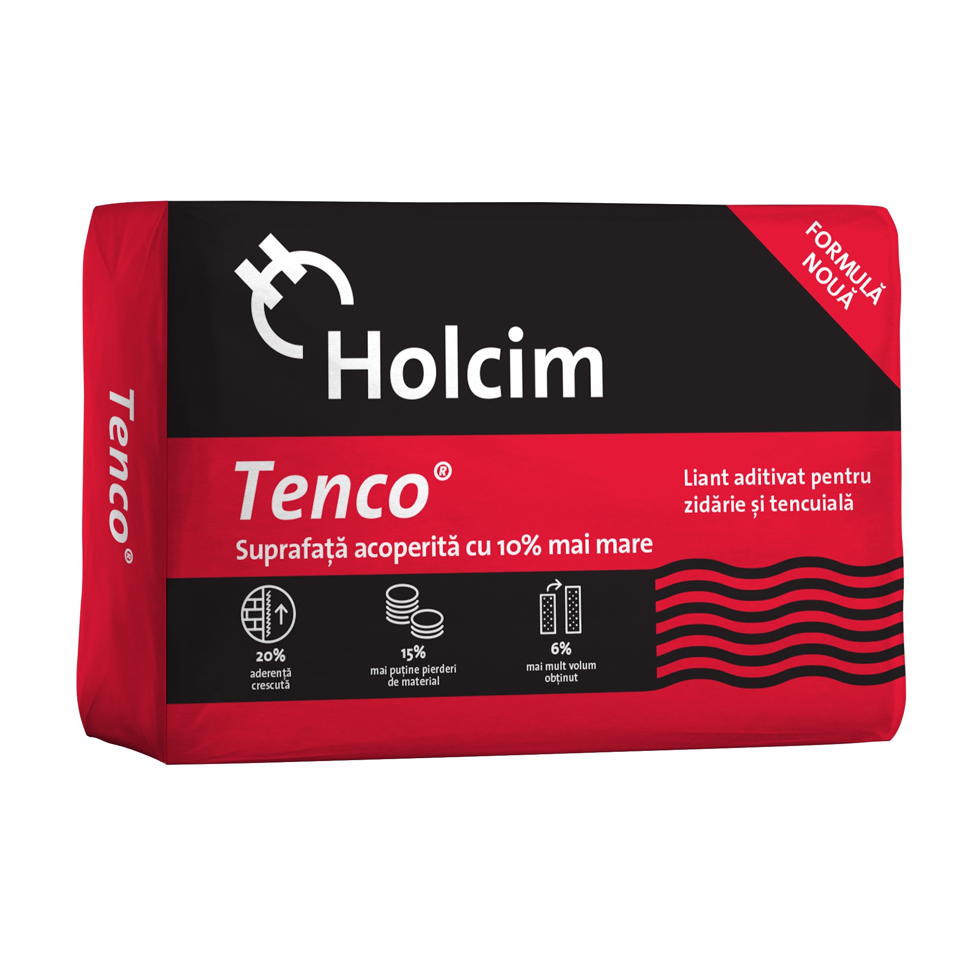 Tenco® este un liant special de clasa MC 12,5, cu amprenta redusa de CO2 si cu o formula imbunatatita ce asigura suprafete acoperite cu 10% mai mari.