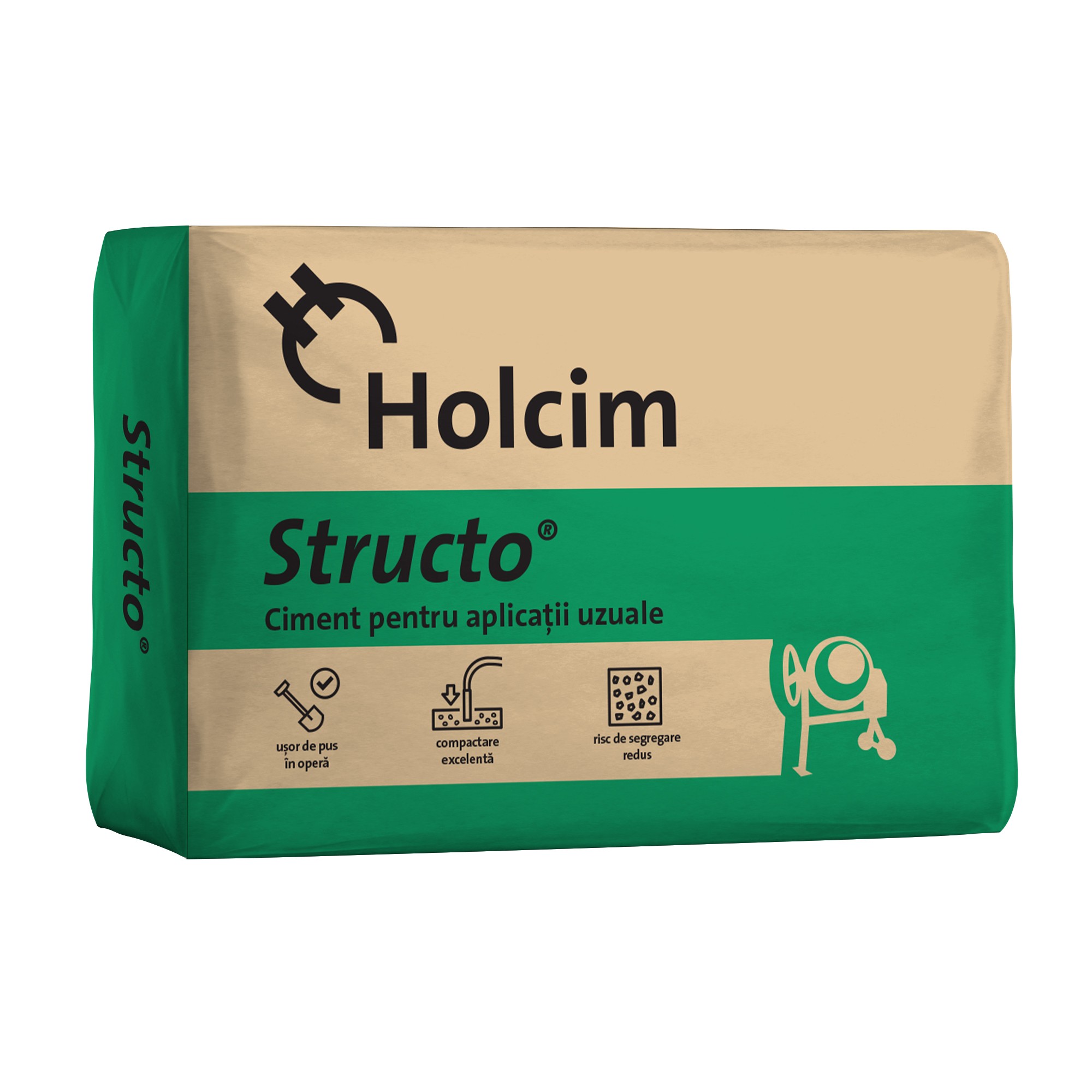Structo este un ciment pentru aplicatii uzuale, usor de utilizat in betoane si mortare, dezvoltat special pentru a oferi cea mai buna lucrabilitate posibila. Cu Structo se pot duce la bun sfarsit atat lucrari noi de constructii de tip case parter, anexe gospodaresti, lucrari auxiliare, cat si lucrari de renovare si amenajari.