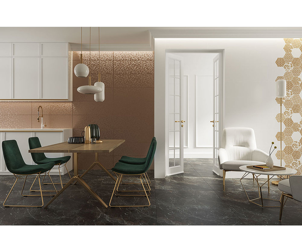 DECOR SHINY LINES GOLD HEXAGON INSERTO F 19.8X17.1, 12 BUC/CUT