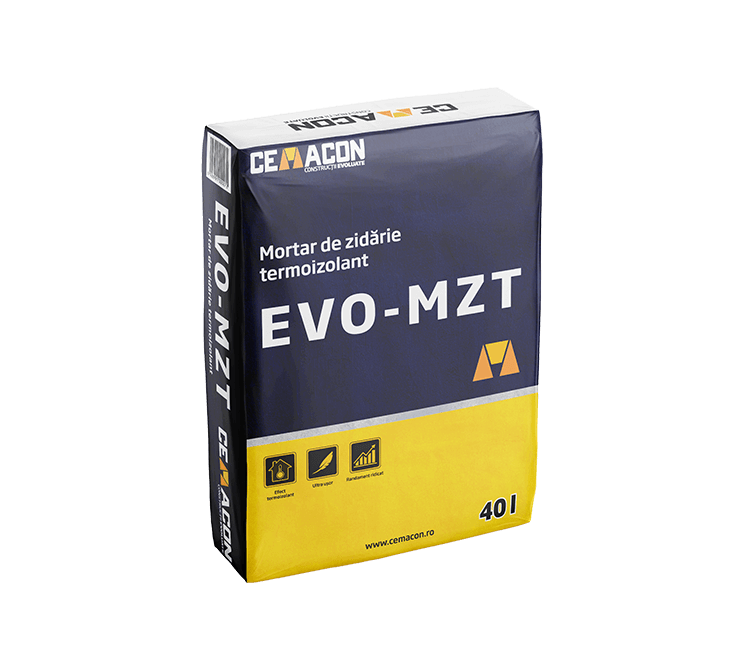 Se obțin 40 litri de mortar proaspăt dintr-un sac de 22 kg de mortar termoizolant, cu 65% mai mult decât dintr-un sac de mortar clasic. Astfel, pentru realizarea unui metru cub de zidărie EVOCERAMIC 44VB sunt necesari 1.6 saci de EVO-MZT.