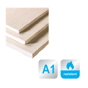 Plăci Fireboard, ignifuge A1, gips și fibră de sticlă 12,5 – 1250 x 2000 mm (Knauf)