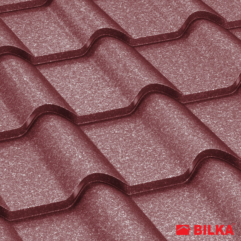 Țiglă metalică Balcanic, finisaj grandemat, culoare vișiniu închis, RAL: 3005 (Bilka)