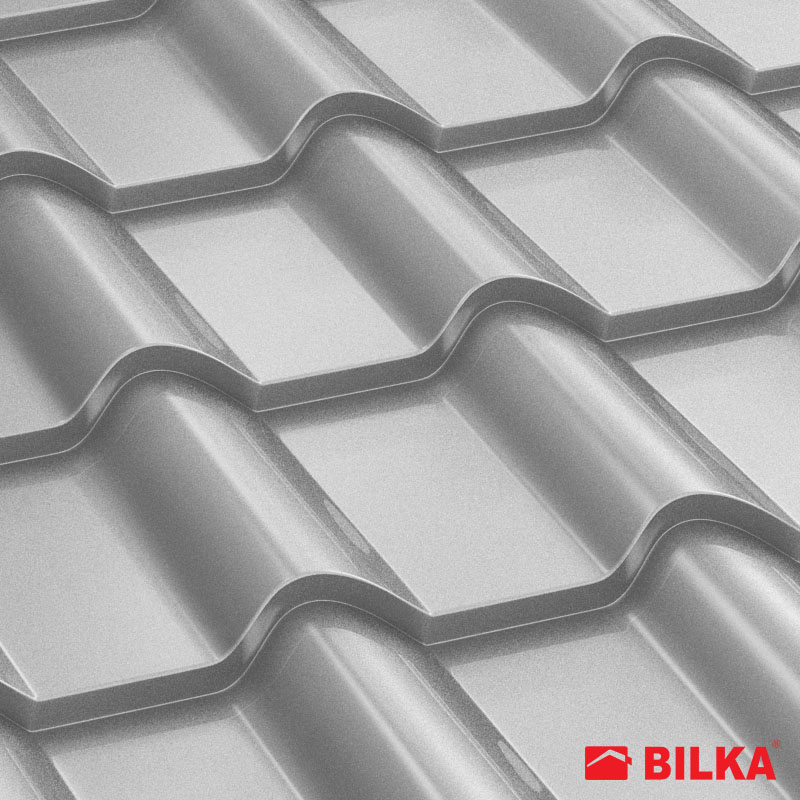 Țiglă metalică Balcanic, finisaj lucios, culoare argintiu, RAL: 9006 (Bilka)