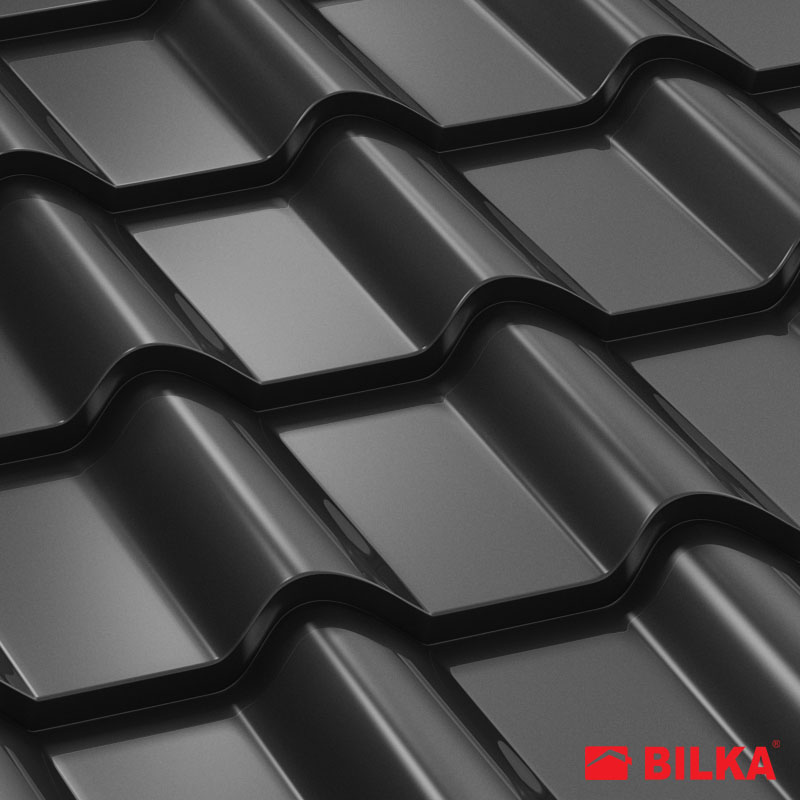 Țiglă metalică Balcanic, finisaj lucios, culoare negru, RAL: 9005 (Bilka)