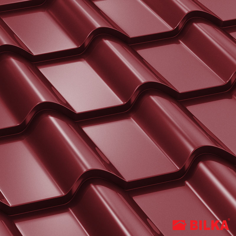 Țiglă metalică Balcanic, finisaj lucios, culoare vișiniu închis, RAL: 3005 (Bilka)