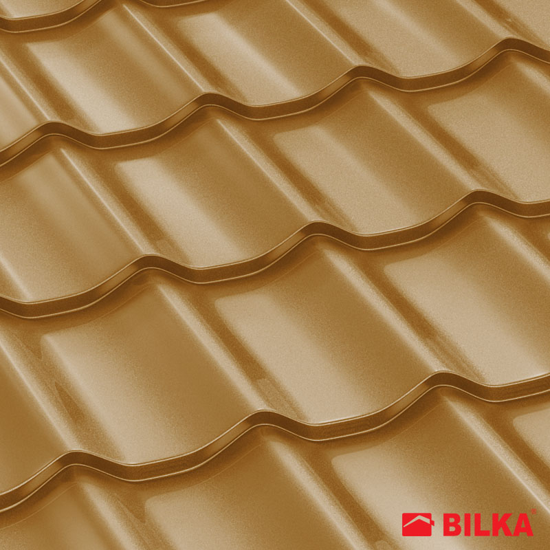 Țiglă metalică Clasic, finisaj lucios, culoare alamă, RAL: 8003 (Bilka)