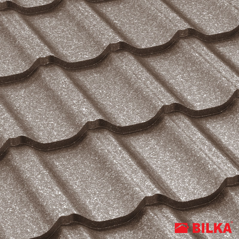 Țiglă metalică Gotic, finisaj grandemat, culoare maro închis, RAL: 8019 (Bilka)