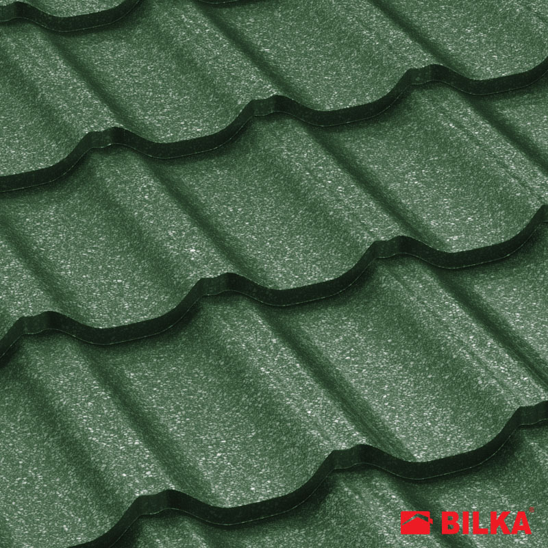 Țiglă metalică Gotic, finisaj grandemat, culoare verde, RAL: 6005 (Bilka)