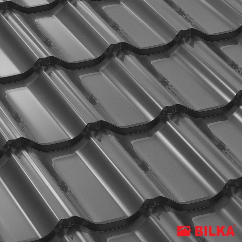Țiglă metalică Gotic, finisaj lucios, culoare gri grafit, RAL: 7024 (Bilka)