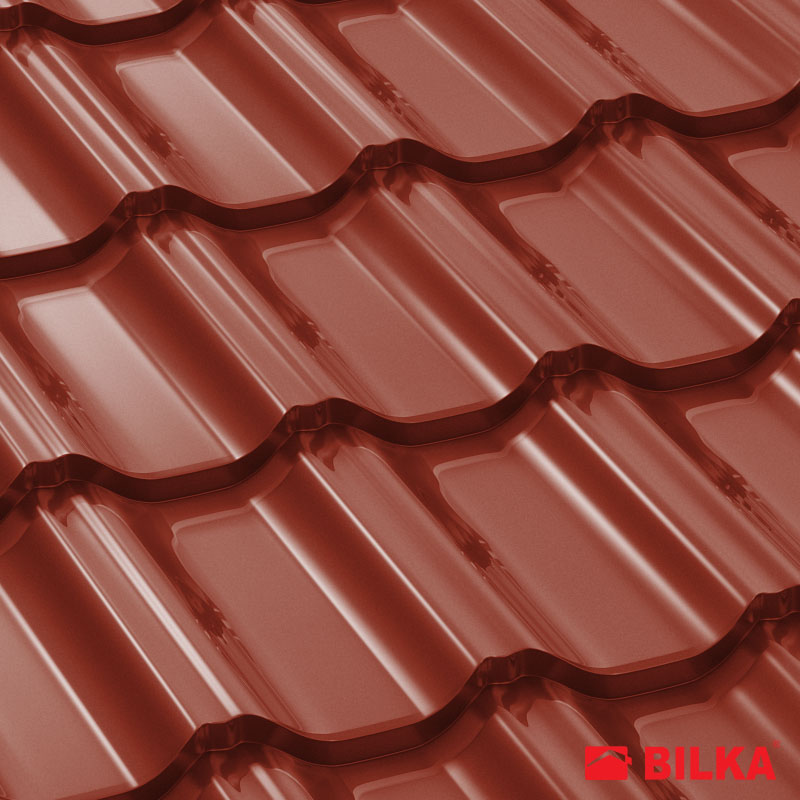 Țiglă metalică Gotic, finisaj lucios, culoare roșu maroniu, RAL: 3009 (Bilka)