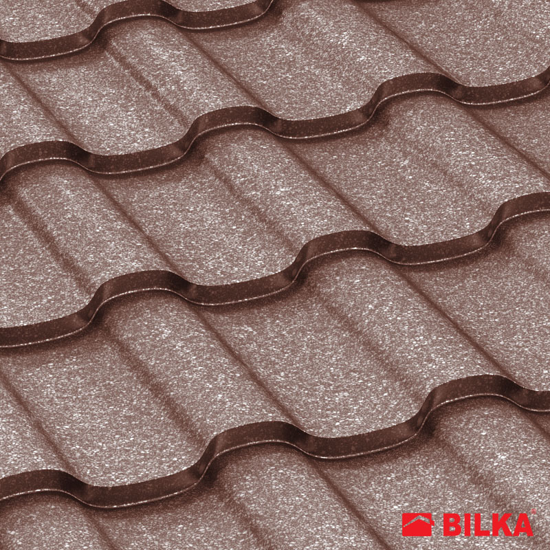 Țiglă metalică Iberic, finisaj grandemat, culoare maro ciocolatiu, RAL: 8017 (Bilka)