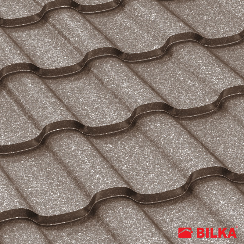 Țiglă metalică Iberic, finisaj grandemat, culoare maro închis, RAL: 8019 (Bilka)