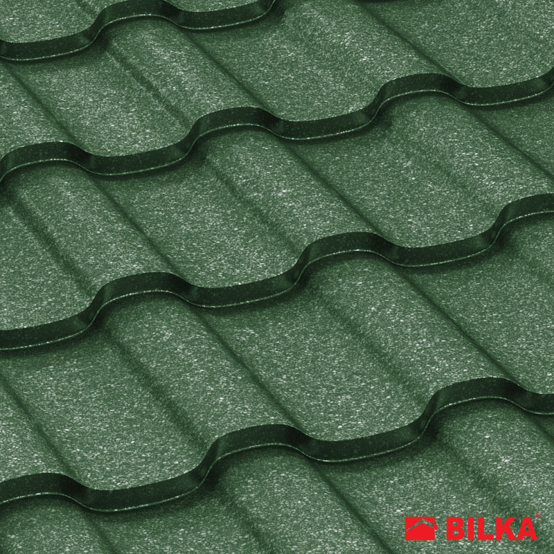 Țiglă metalică Iberic, finisaj grandemat, culoare verde, RAL: 6005 (Bilka)