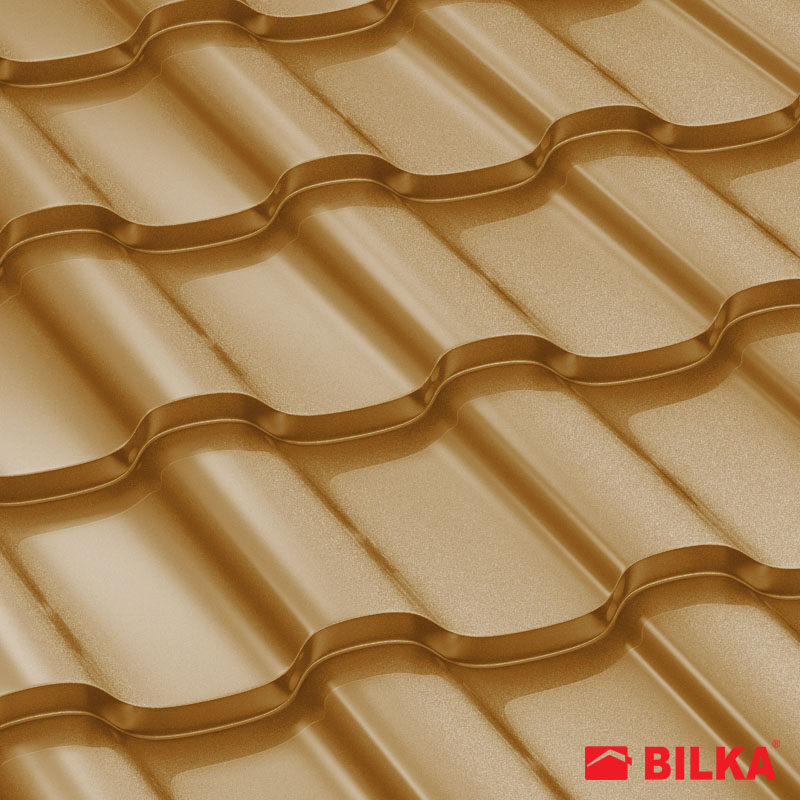 Țiglă metalică Iberic, finisaj lucios, culoare alamă, RAL: 8003 (Bilka)