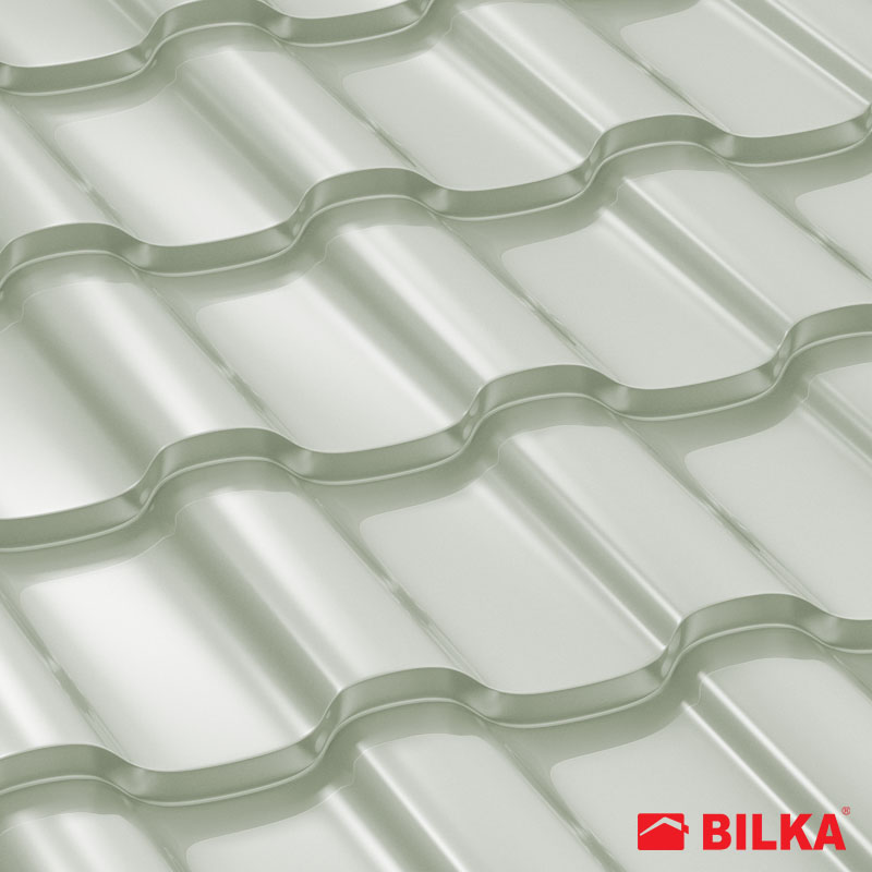Țiglă metalică Iberic, finisaj lucios, culoare alb, RAL: 9002 (Bilka)