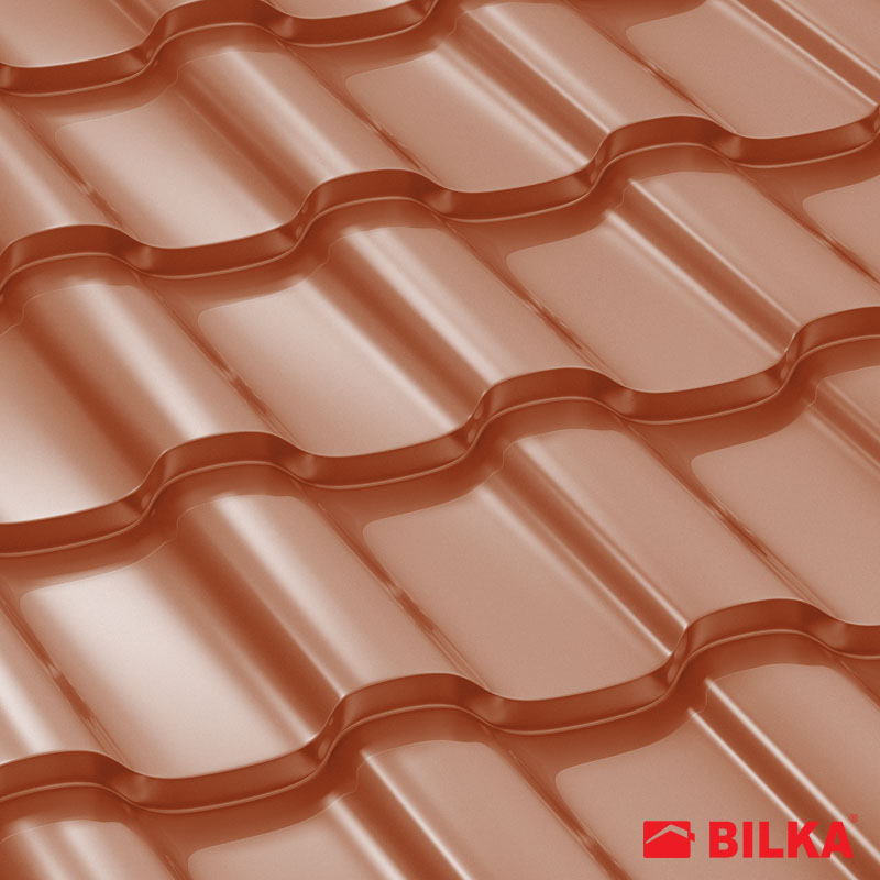 Țiglă metalică Iberic, finisaj lucios, culoare cărămiziu, RAL: 8004 (Bilka)