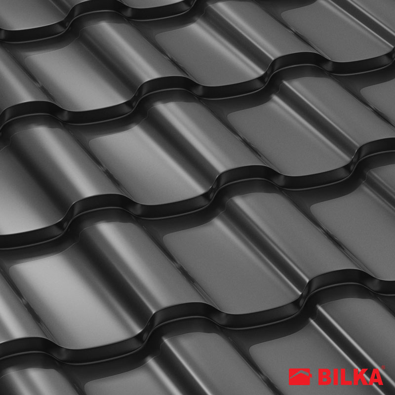 Țiglă metalică Iberic, finisaj lucios, culoare negru, RAL: 9005 (Bilka)