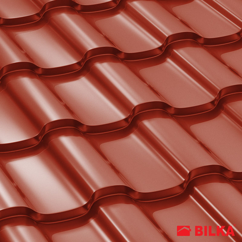Țiglă metalică Iberic, finisaj lucios, culoare roșu, RAL: 3011 (Bilka)