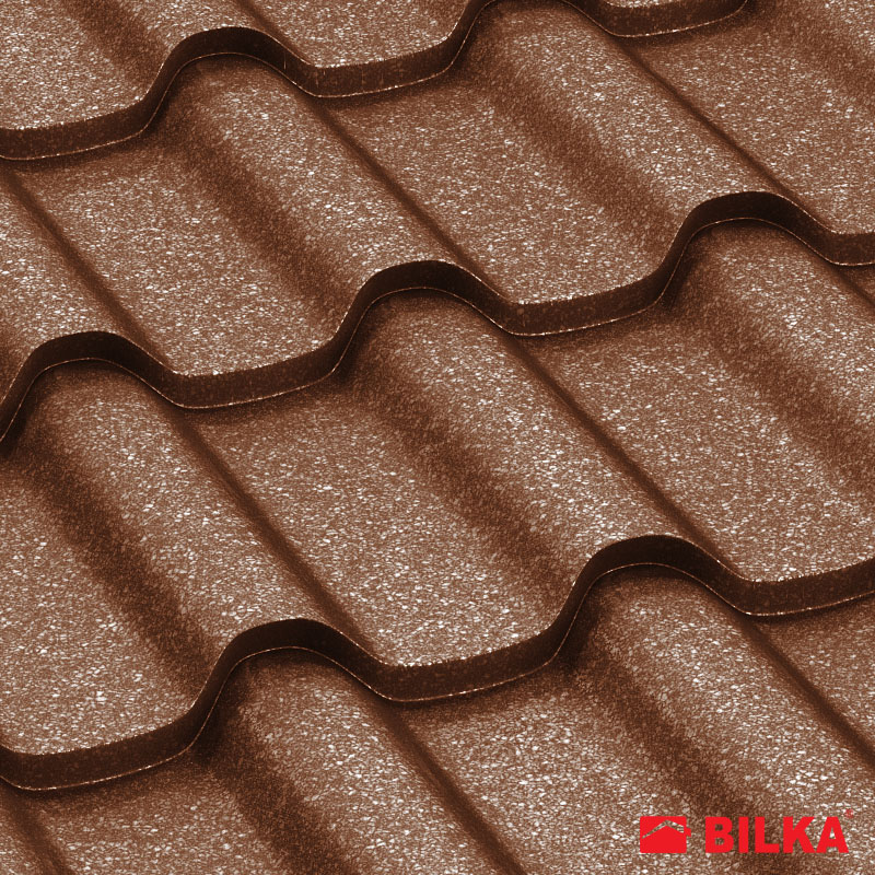 Țiglă metalică Romanic, finisaj grandemat, culoare cărămiziu, RAL: 8004 (Bilka)