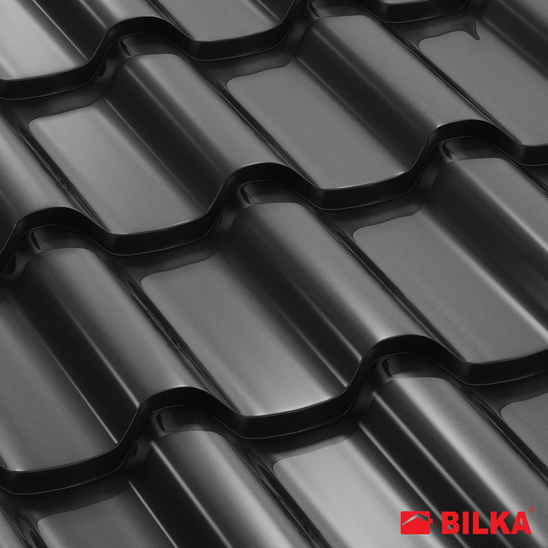 Țiglă metalică Romanic, finisaj lucios, culoare negru, RAL: 9005 (Bilka)