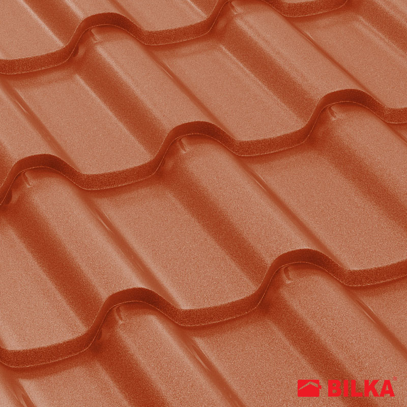 Țiglă metalică Romanic, finisaj mat, culoare cărămiziu, RAL: 8004 (Bilka)