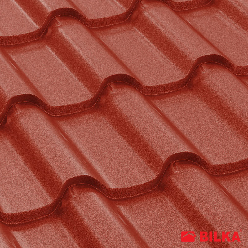Țiglă metalică Romanic, finisaj mat, culoare roșu maroniu, RAL: 3009 (Bilka)